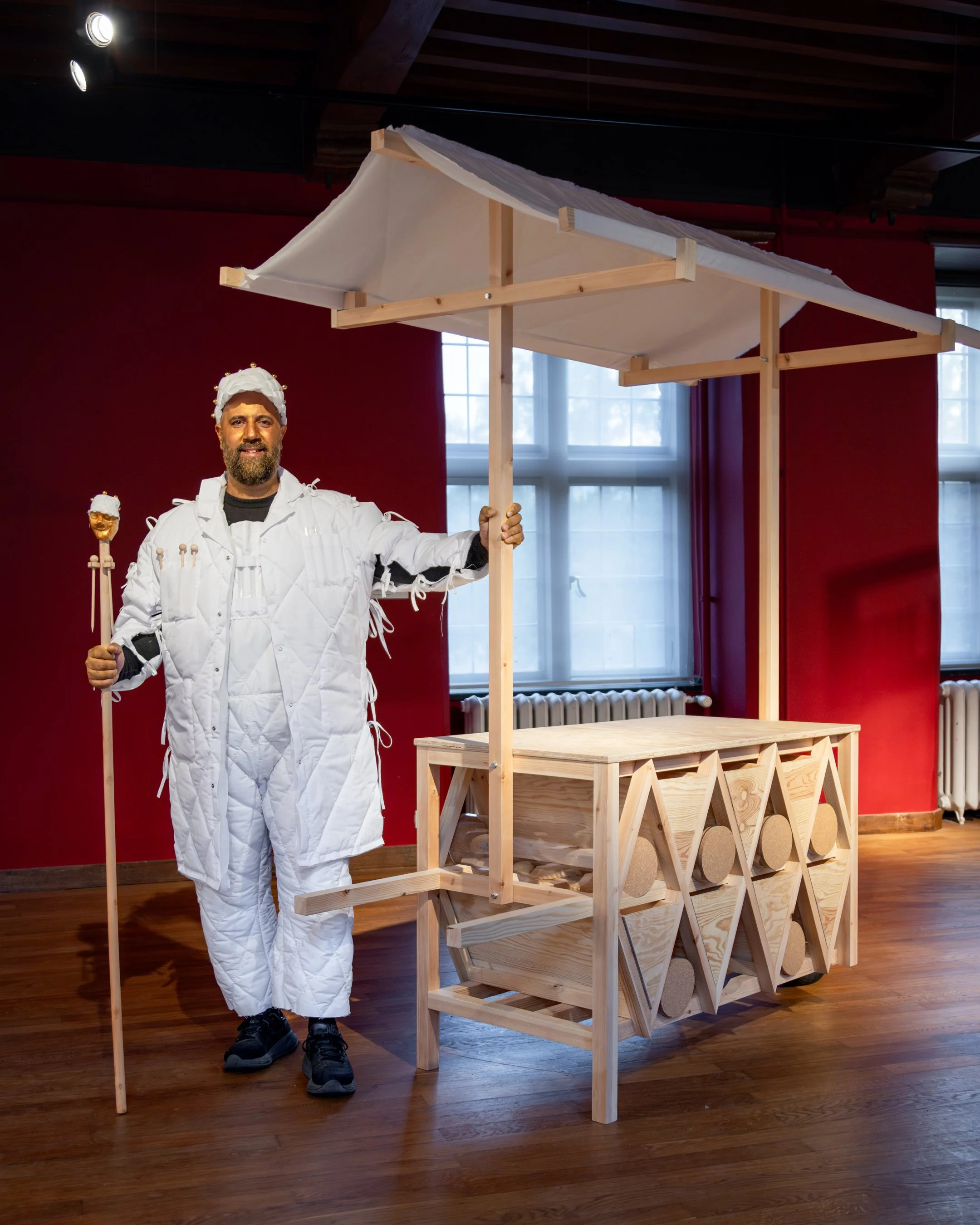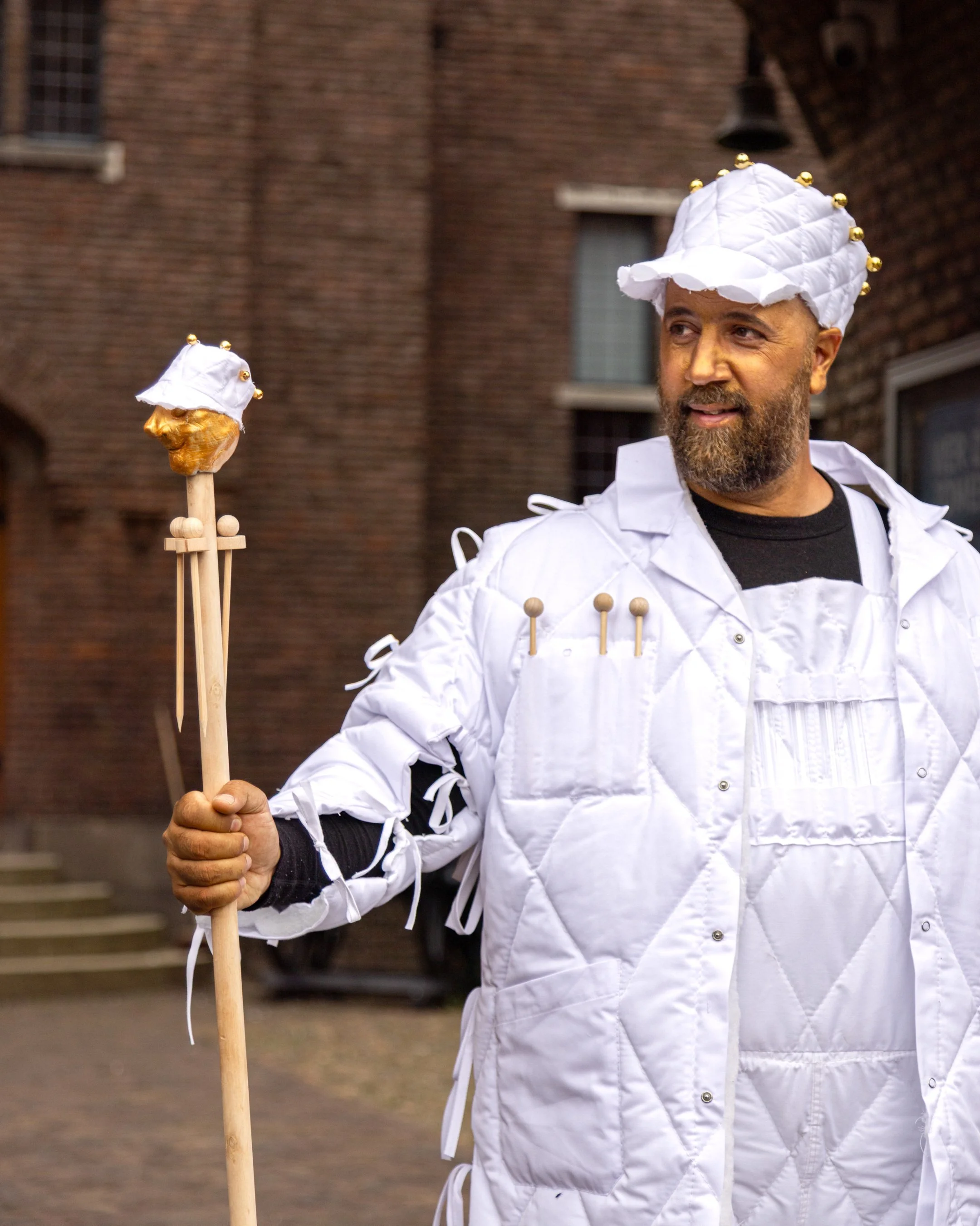 Carnaval Alchemist is a character that is part of the art project Carnaval Atelier: Unearthing the Gold of Helmond's Carnival by Yasser Ballemans in collaboration with Museum Helmond. The project is a journey into the heart of Helmond's carnival tradition and it introduces the Carnaval Alchemist, a mysterious, gold-clad figure portrayed by artist Yasser Ballemans. He wanders through Helmond, searching for the soul of the local carnival. What makes this celebration so unique? What is the true 'gold' of this tradition for the people who cherish it? The Carnaval Atelier is a participatory art project designed to ignite the creative energy of the Helmond community by forging a new connection between art and carnival.